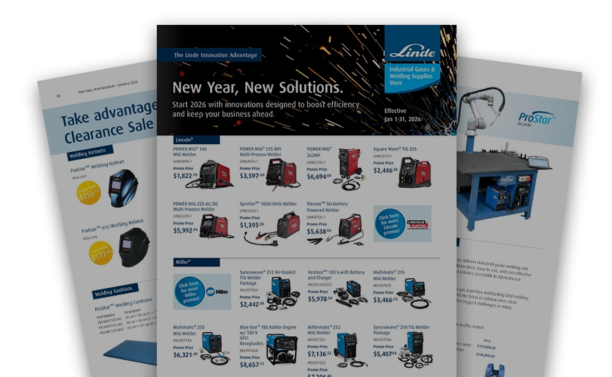Along with our extensive portfolio of pure gases and blends, we also offer equipment and consumable solutions for gas handling and regulation, welding and cutting, personal protection equipment (PPE) and more. We offer a broad range of products from industrial equipment experts such as Lincoln, Miller, Hypertherm and ESAB and we also offer a comprehensive line of privately branded consumables under our PROSTAR name providing quality, availability and value.