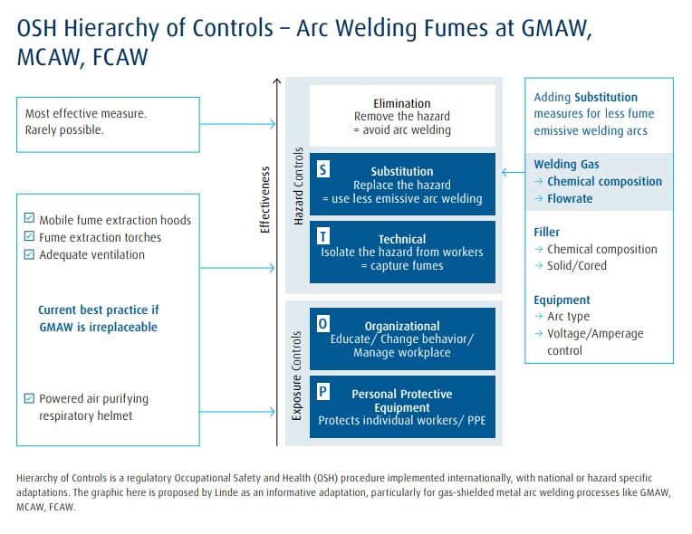 Local Exhaust Ventilation (LEV) are the most effective technical measure, recommended by CCOHS’s hierarchy of controls.